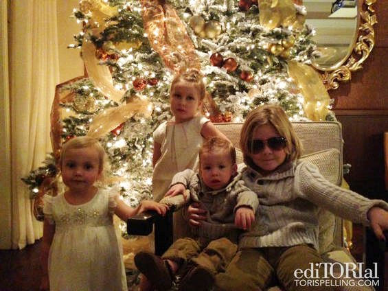 She added, "We're spending the day together - cuddling, cooking, baking, unwrapping gifts, eating, watching movies and counting our blessings... How are you spending Christmas Day?" Spelling also shared a photo of her four adorable children posing in font of a Christmas tree in the blog post.